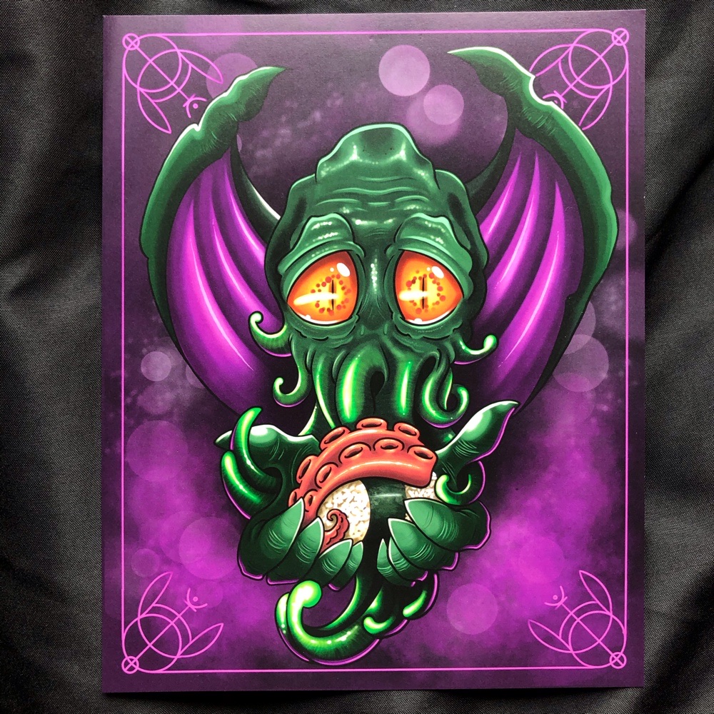 Digital painting printed on 8”x10” 100# cover paper. Trying to explain to the elder god of chaos what “nigiri” is might prove to be... difficult.