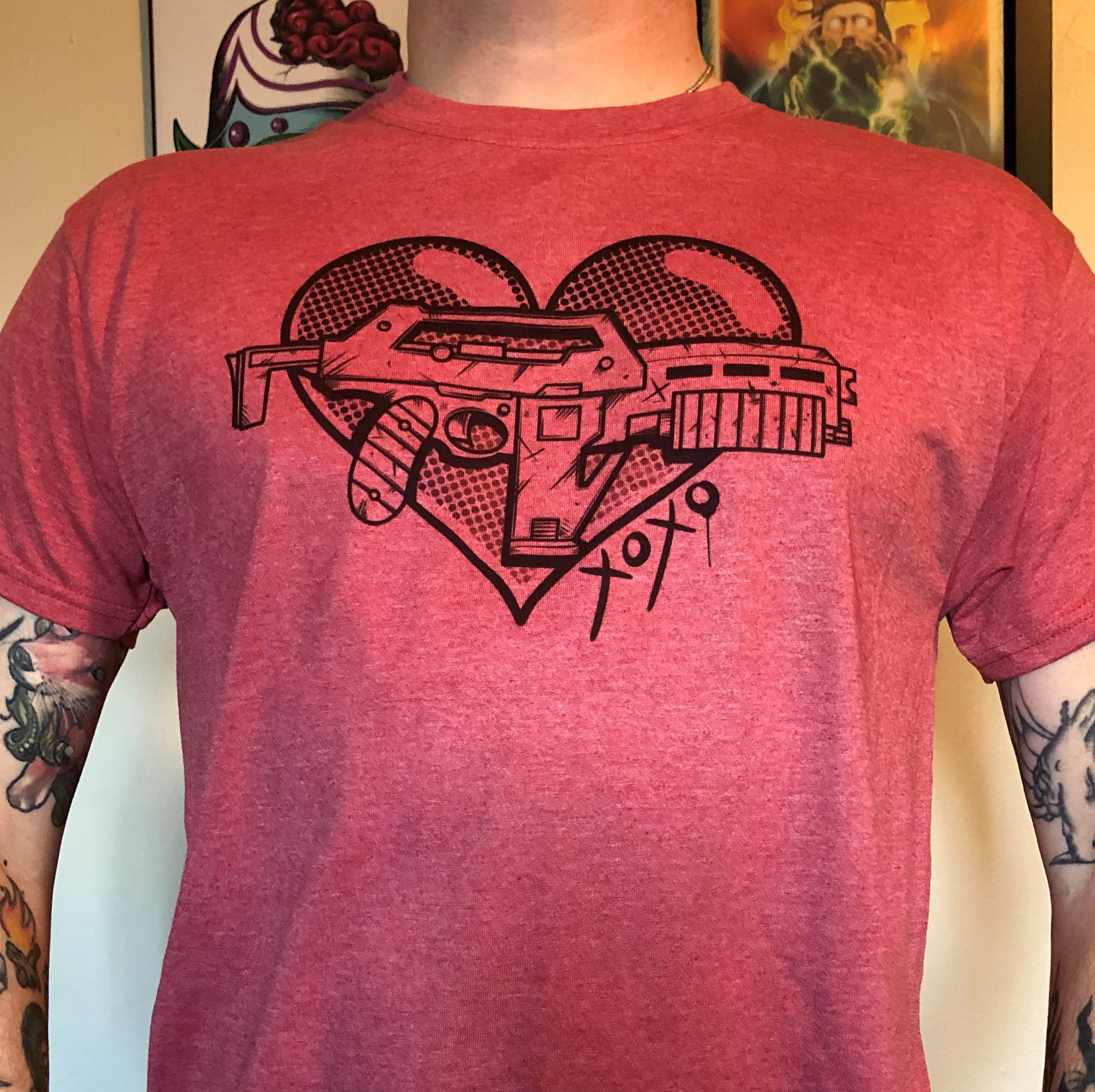 50/50 blend Pulse Rifle Romance logo tee shirts.